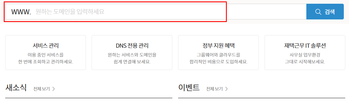 가비아에 로그인한 후에 원하는 사이트 주소를 입력한다.