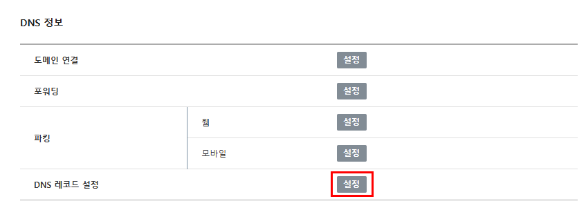 2. 관리를 클릭한 후 들어가서 아래로 내리다보면 DNS 정보가 나오는데 여기서 DNS 레코드 설정으로 들어간다.
