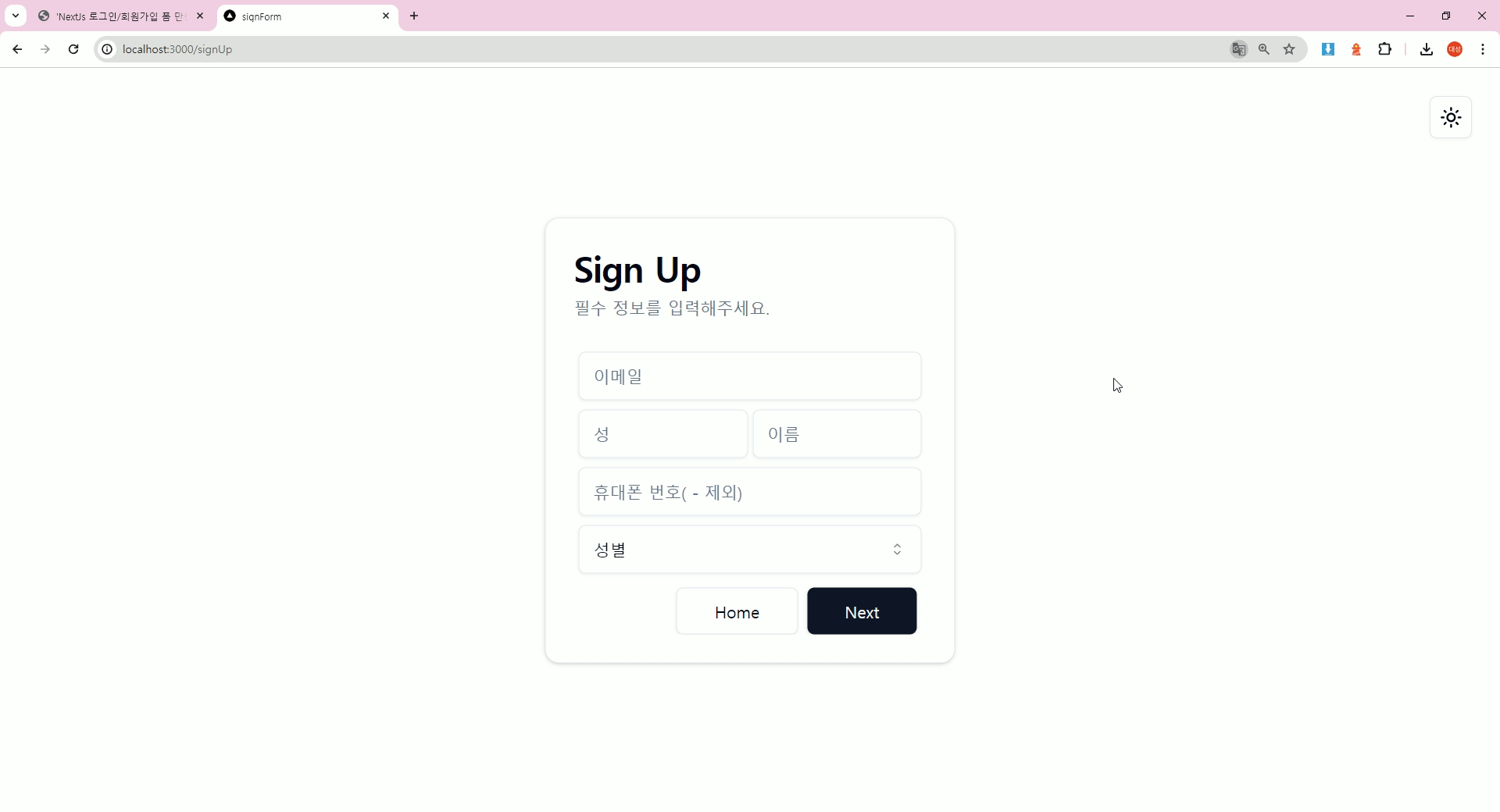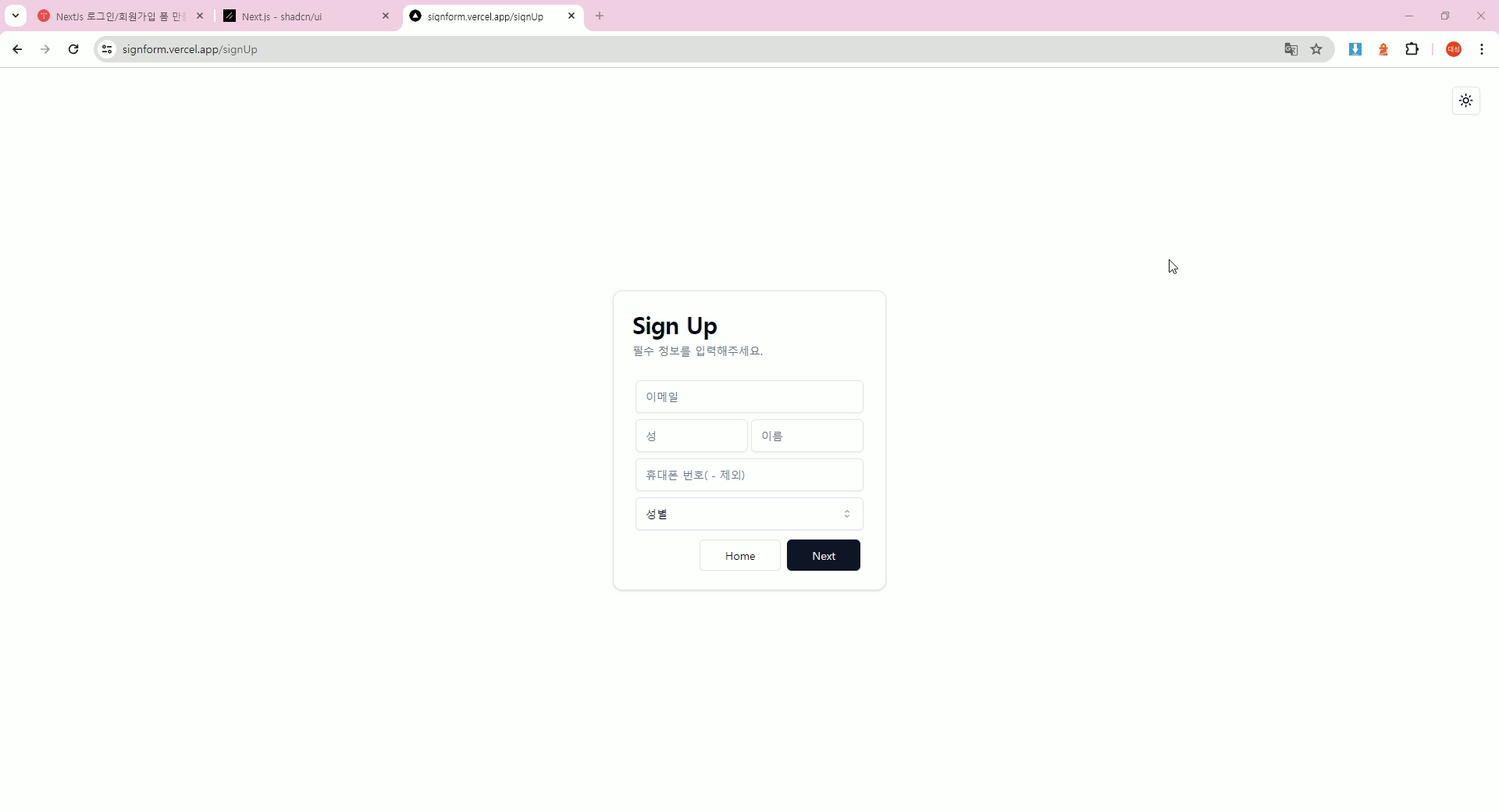 NextJs 로그인/회원가입 폼 만들기2 (feat. tailwind, shandcn) 본문