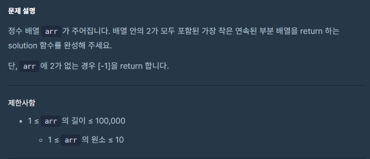 1. 배열에 2가 없는 조건을 먼저 클리어 하기 위해 includes를 사용해서 arr의 배열에 2가 없을 시 [-1]을 리턴 하도록 했다.